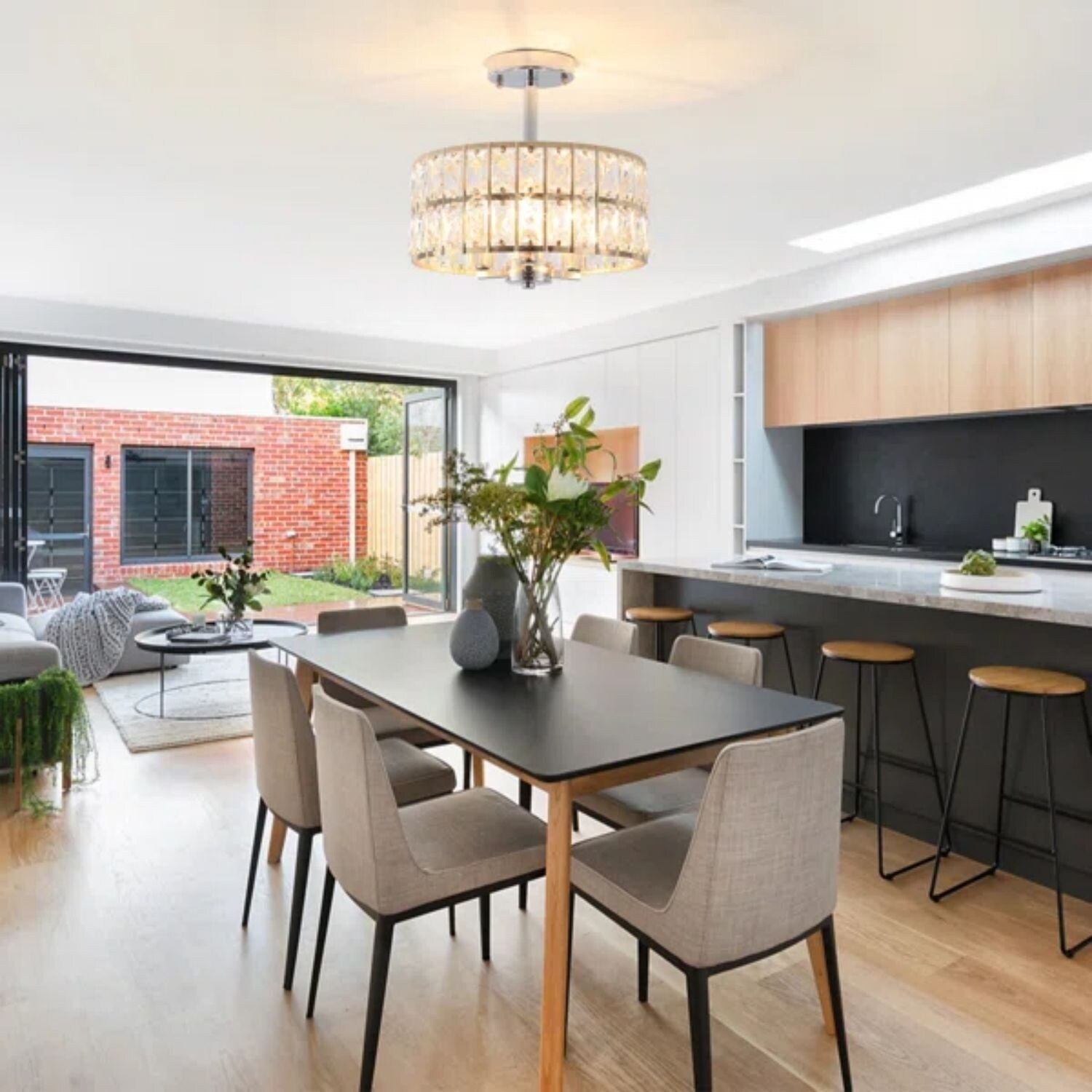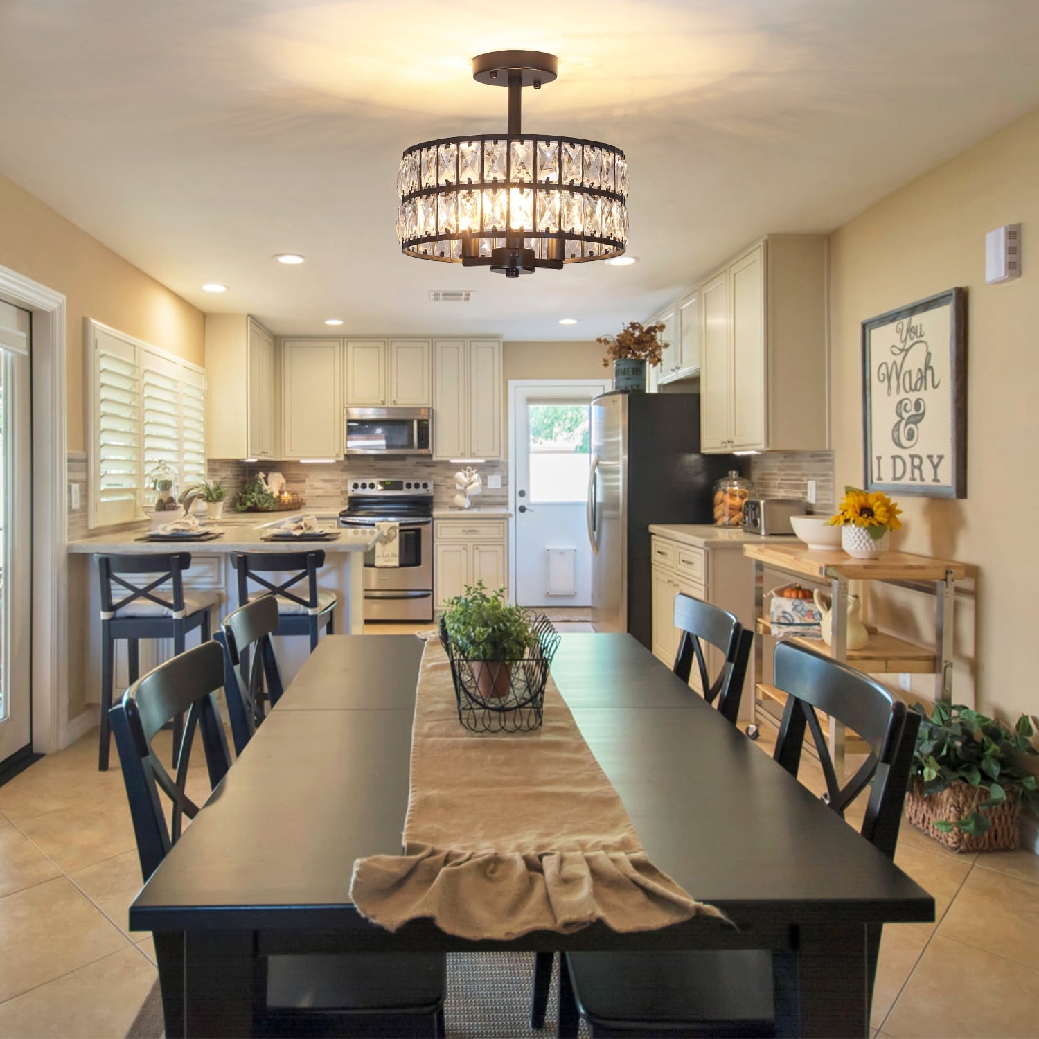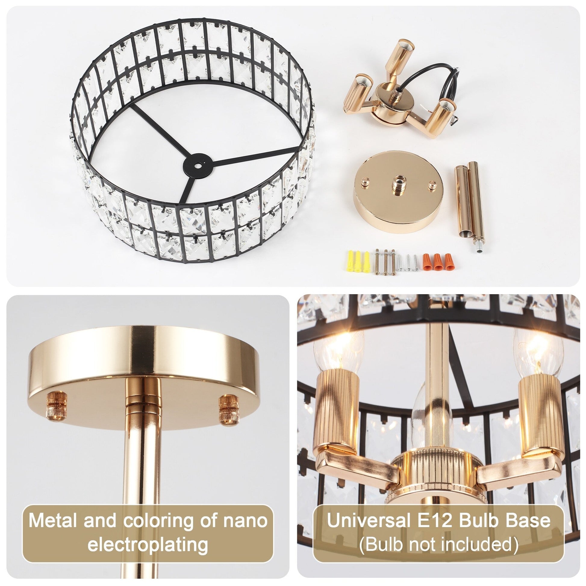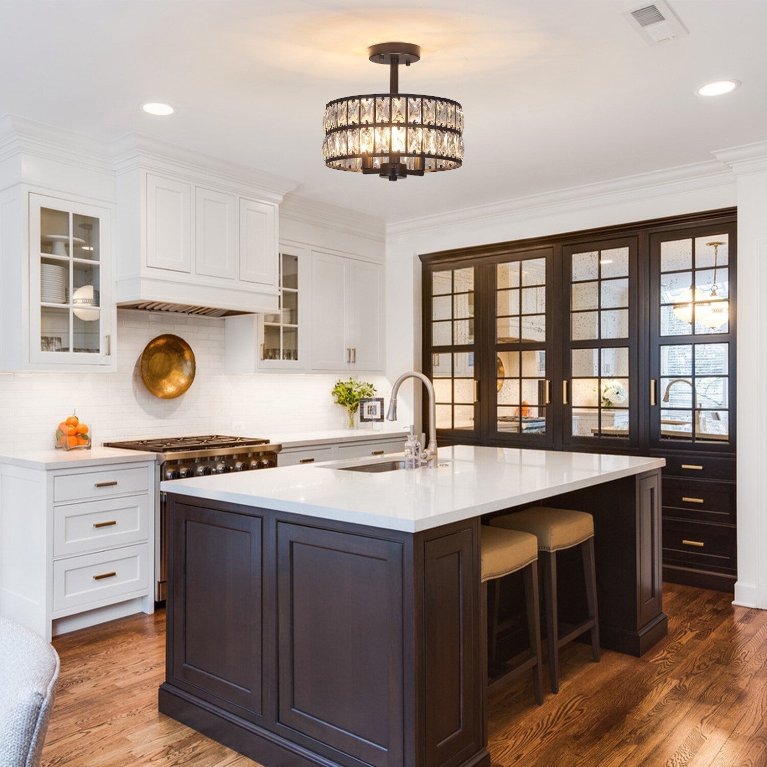 Plafonnier semi-encastré à 3 lumières en cristal pour...