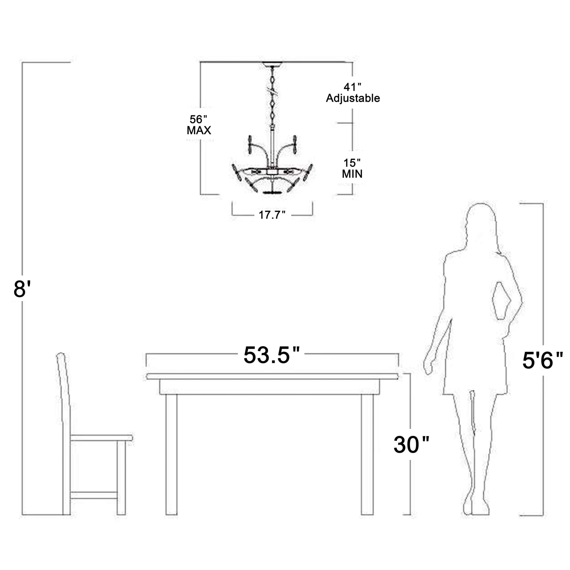 • Hauteur de suspension maximale (du plafond au bas du luminaire) : 56 pouces, qui peut être raccourcie.