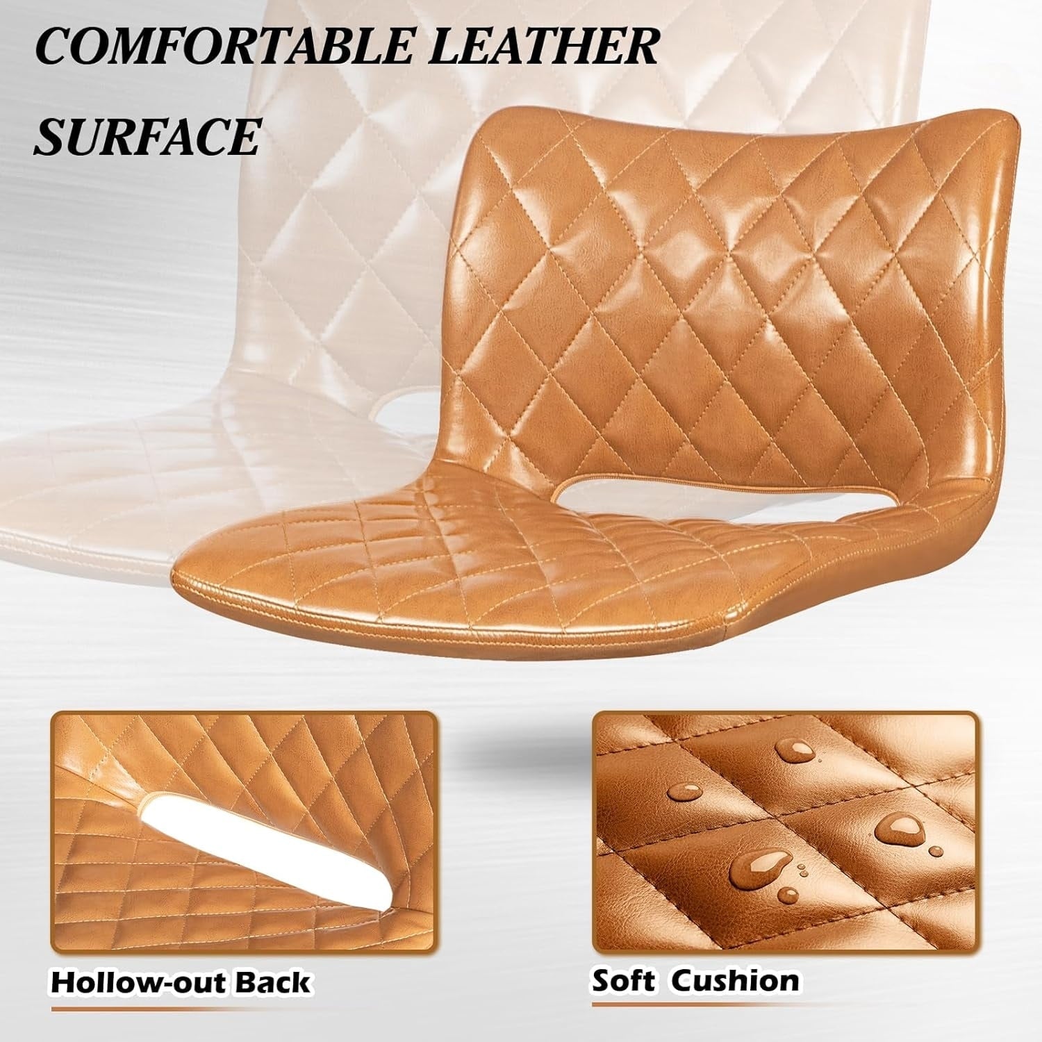 These bar stools combines a novel and fashionable design with great comfort and durability, streamlined leather seat. Constructed with polished chrome base and footrest, and the soft seat provide a long time comfort. The height can be adjusted at will, whether it is a home kitchen island or a bar, the height is suitable, the imitation leather furniture has attractive retro colors and a sturdy frame, and the 360° rotating design creates the most comfortable experience for you.