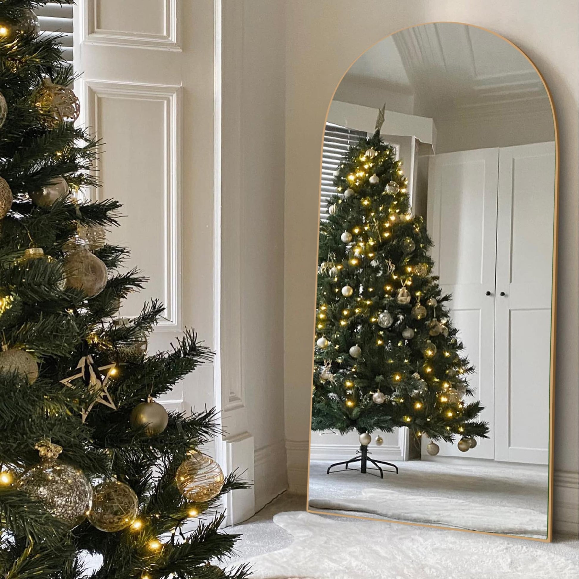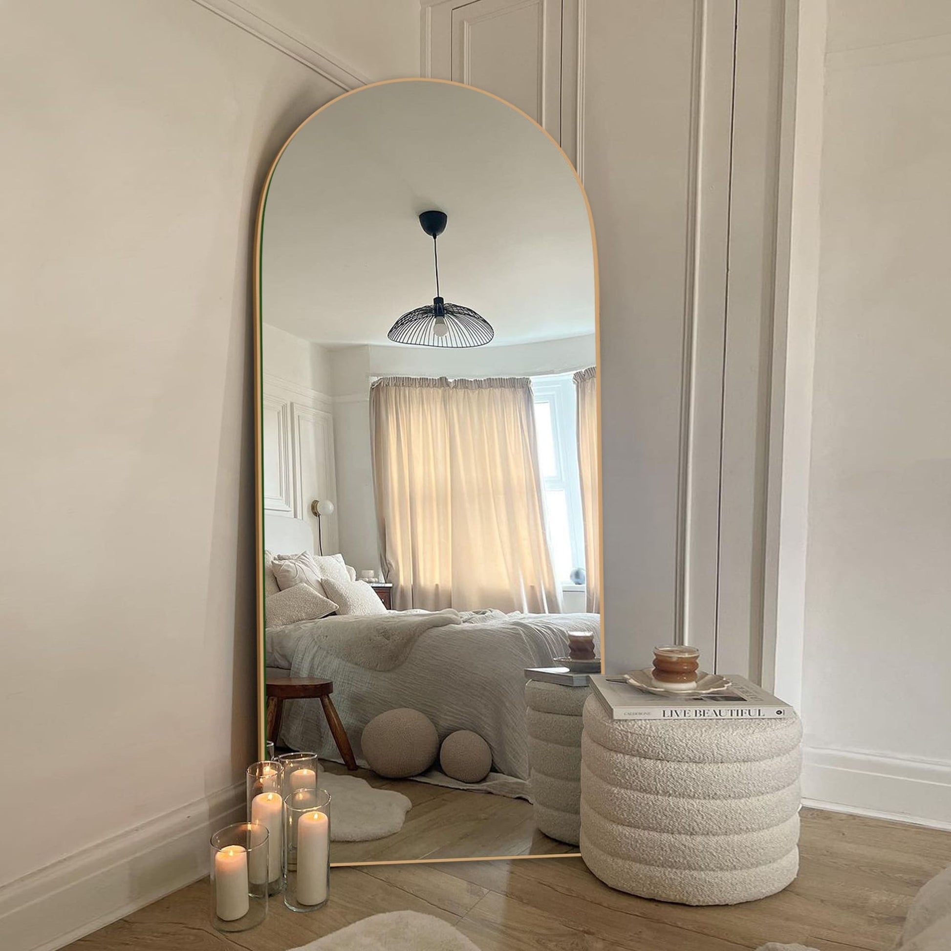 Miroir de sol en bois arqué pleine longueur, miroir mural