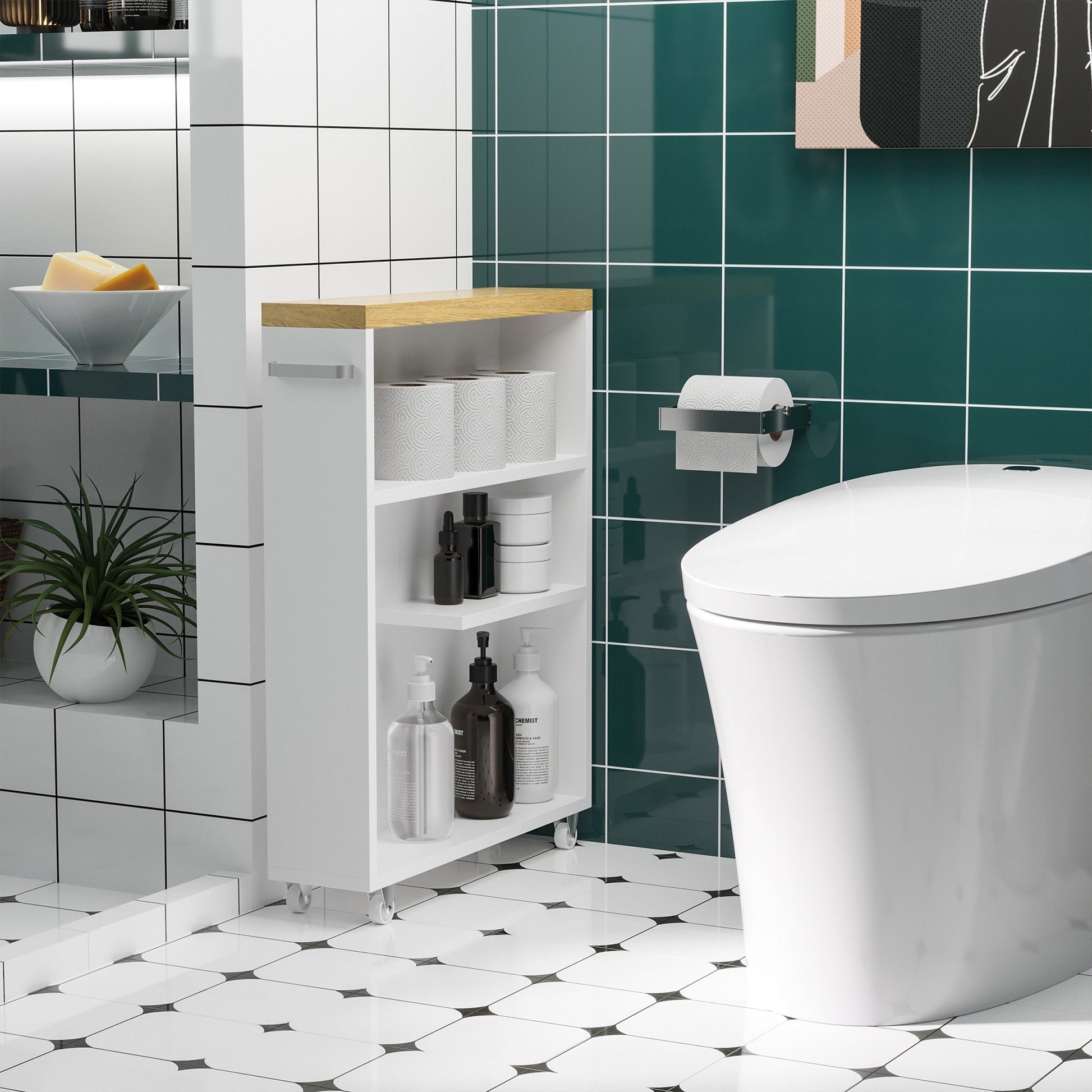 kleankin Slim Bathroom Cabinet with Castor...