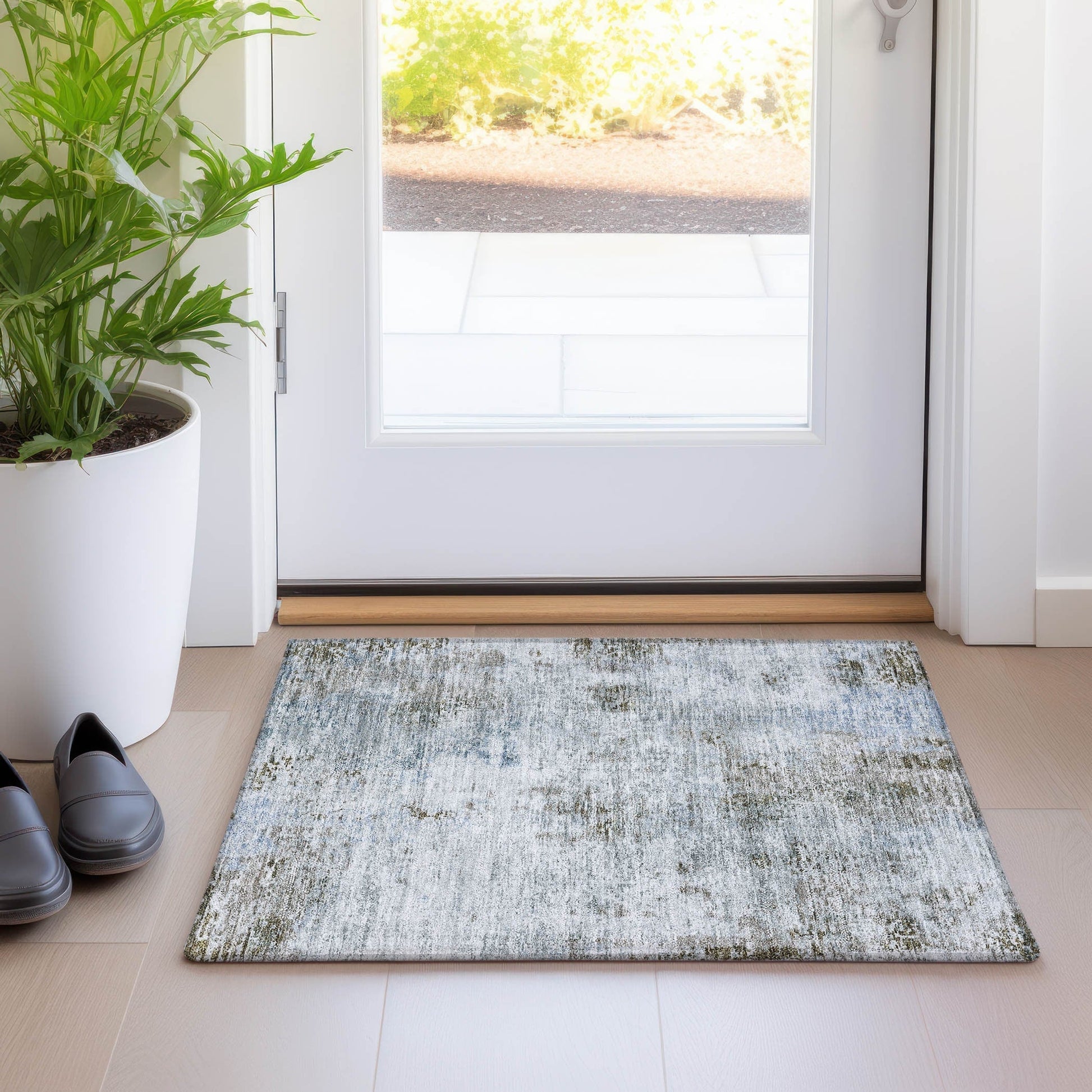 Adorn your floors with our area rug, featuring abstract patterns and whimsical motifs that blend transitional and modern styles. The rug's unique design adds a touch of creativity and fun to your decor. It's UV stabilized for longevity in any environment, ultra-thin for easy handling, machine-washable for hassle-free upkeep, and ideal for both families and pets. The ultra thin profile allows for fast drying after a rainfall or outdoor cleaning. UV Stabilized For Indoor or Outdoor Use. All rugs exposed to long periods of intense and direct sunlight can experience loss of color over time. Our rugs perform best in covered outdoor areas and uncovered areas with lower hours of direct sunlight.Larger rug sizes may not fit into a residential washing machine. They may be washed in a commercial size washing machine or hosed-off outside with mild soap and water. Air-dry, do not machine dry. While each rug already has a non-skid backing, the necessity for additional cushion or room settings with high traction areas, may require an additional rug pad.