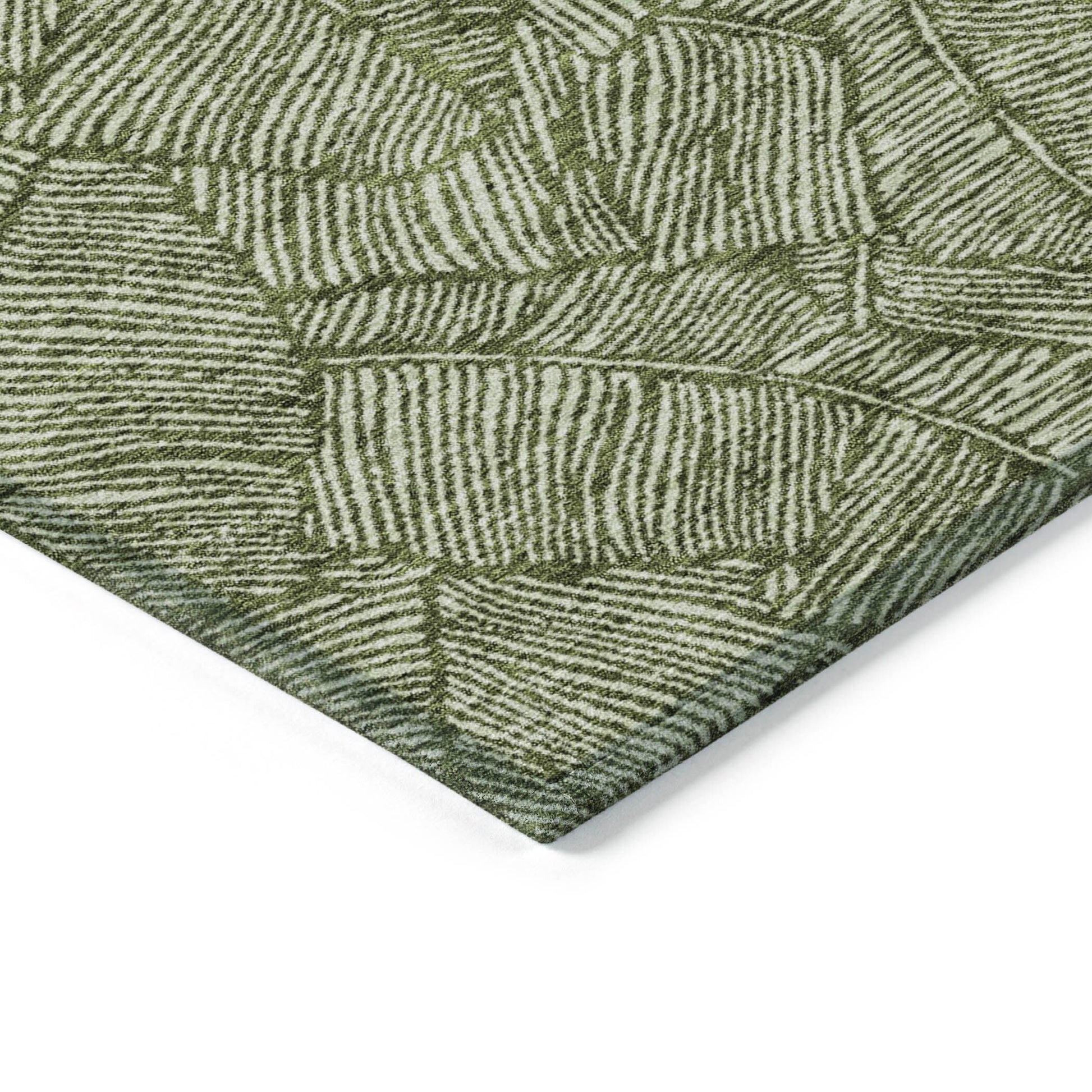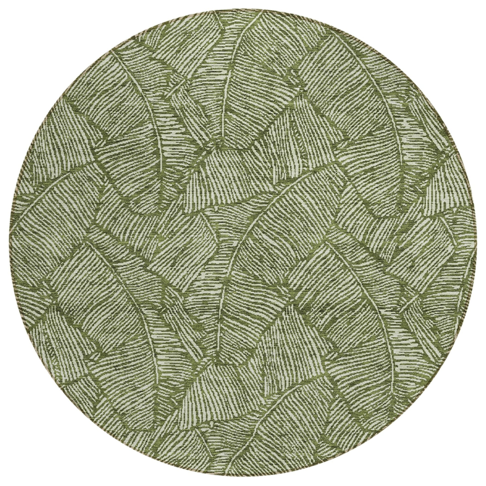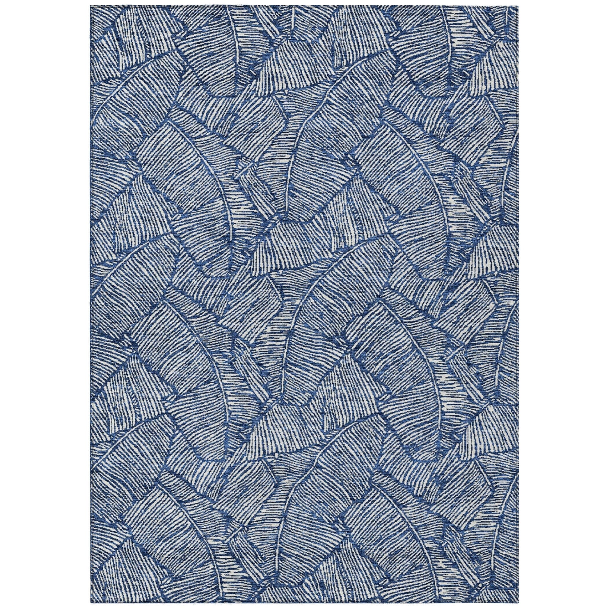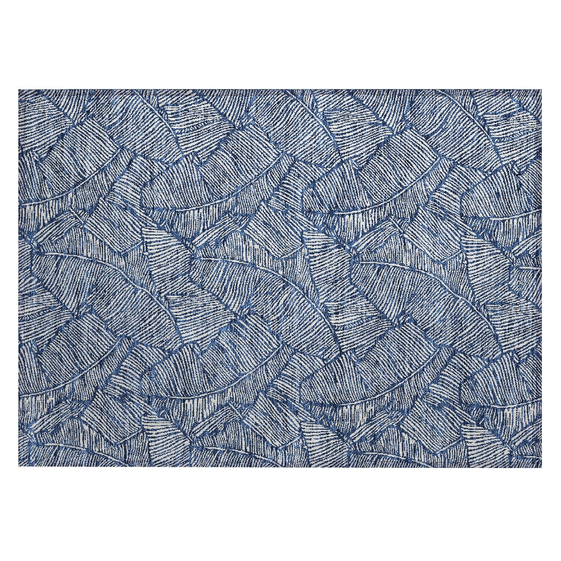 The area rug's large scaled leaves and monotone colorway provide a transitional and floral charm, perfect for enhancing any space. Its UV stabilization allows for use in any setting, while the ultra-thin build fits perfectly in your home. Machine-washable and suitable for families with pets and children, this rug offers both beauty and functionality. The ultra thin profile allows for fast drying after a rainfall or outdoor cleaning. UV Stabilized For Indoor or Outdoor Use. All rugs exposed to long periods of intense and direct sunlight can experience loss of color over time. Our rugs perform best in covered outdoor areas and uncovered areas with lower hours of direct sunlight. Larger rug sizes may not fit into a residential washing machine. They may be washed in a commercial size washing machine or hosed-off outside with mild soap and water. Air-dry, do not machine dry. While each rug already has a non-skid backing, the necessity for additional cushion or room settings with high traction areas, may require an additional rug pad.