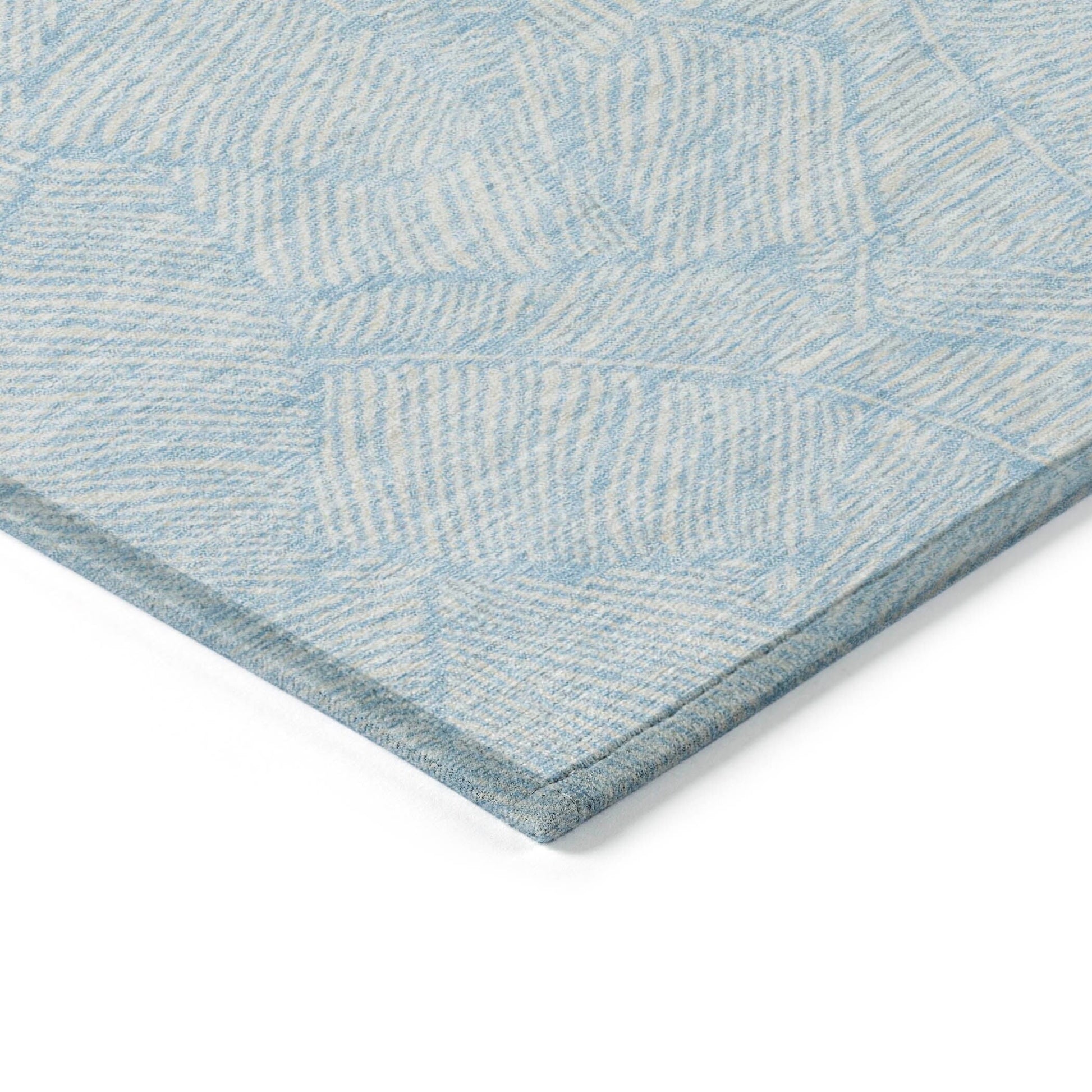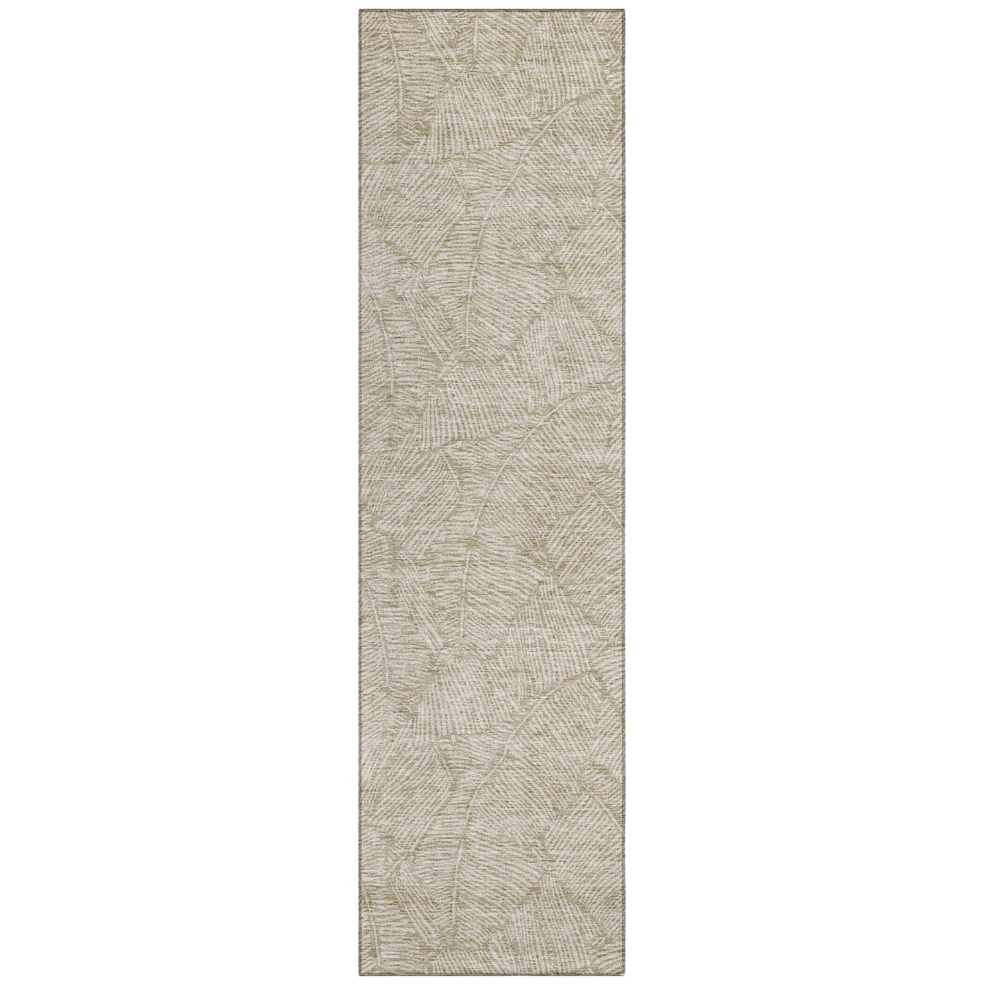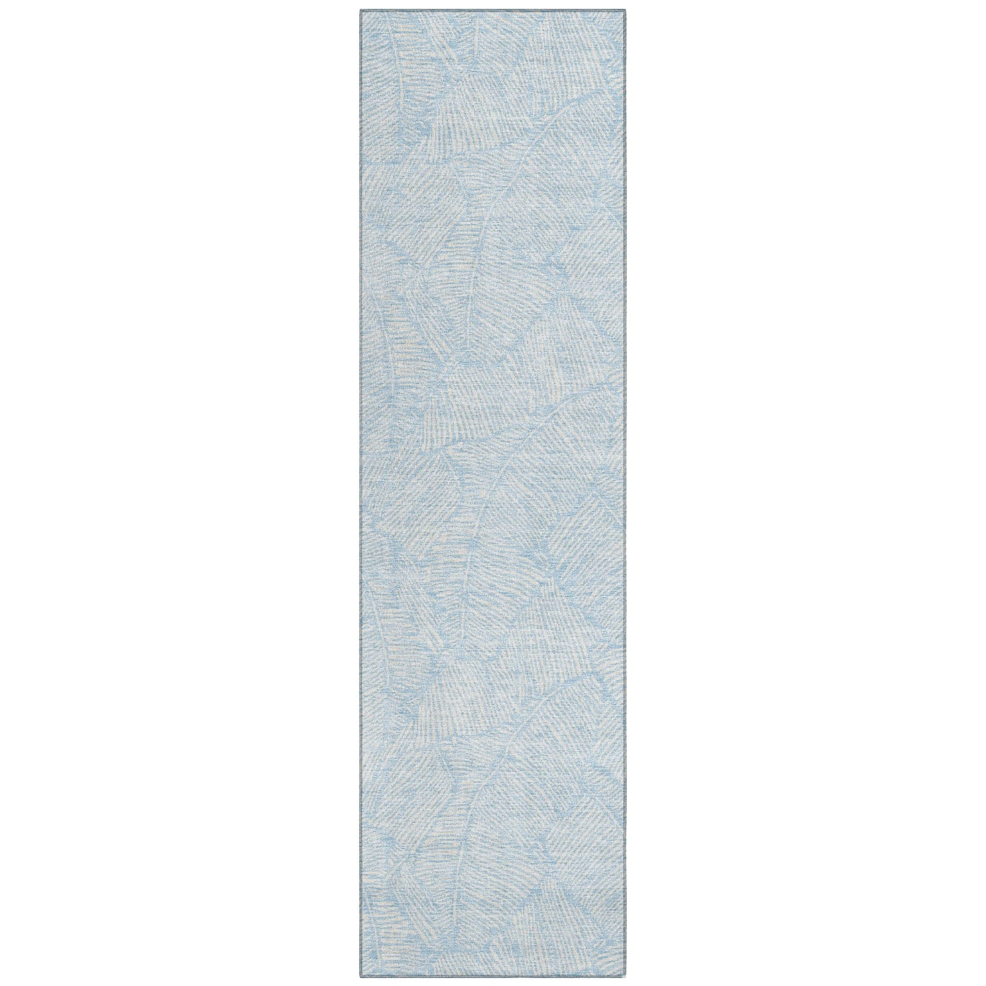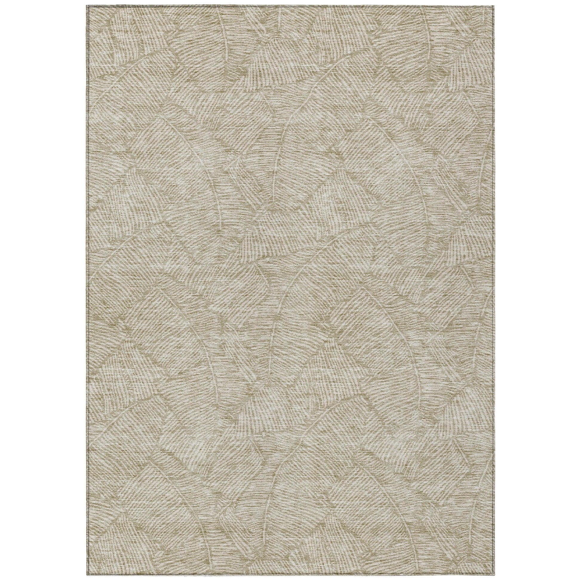 The area rug's large scaled leaves and monotone colorway provide a transitional and floral charm, perfect for enhancing any space. Its UV stabilization allows for use in any setting, while the ultra-thin build fits perfectly in your home. Machine-washable and suitable for families with pets and children, this rug offers both beauty and functionality. The ultra thin profile allows for fast drying after a rainfall or outdoor cleaning. UV Stabilized For Indoor or Outdoor Use. All rugs exposed to long periods of intense and direct sunlight can experience loss of color over time. Our rugs perform best in covered outdoor areas and uncovered areas with lower hours of direct sunlight. Larger rug sizes may not fit into a residential washing machine. They may be washed in a commercial size washing machine or hosed-off outside with mild soap and water. Air-dry, do not machine dry. While each rug already has a non-skid backing, the necessity for additional cushion or room settings with high traction areas, may require an additional rug pad.