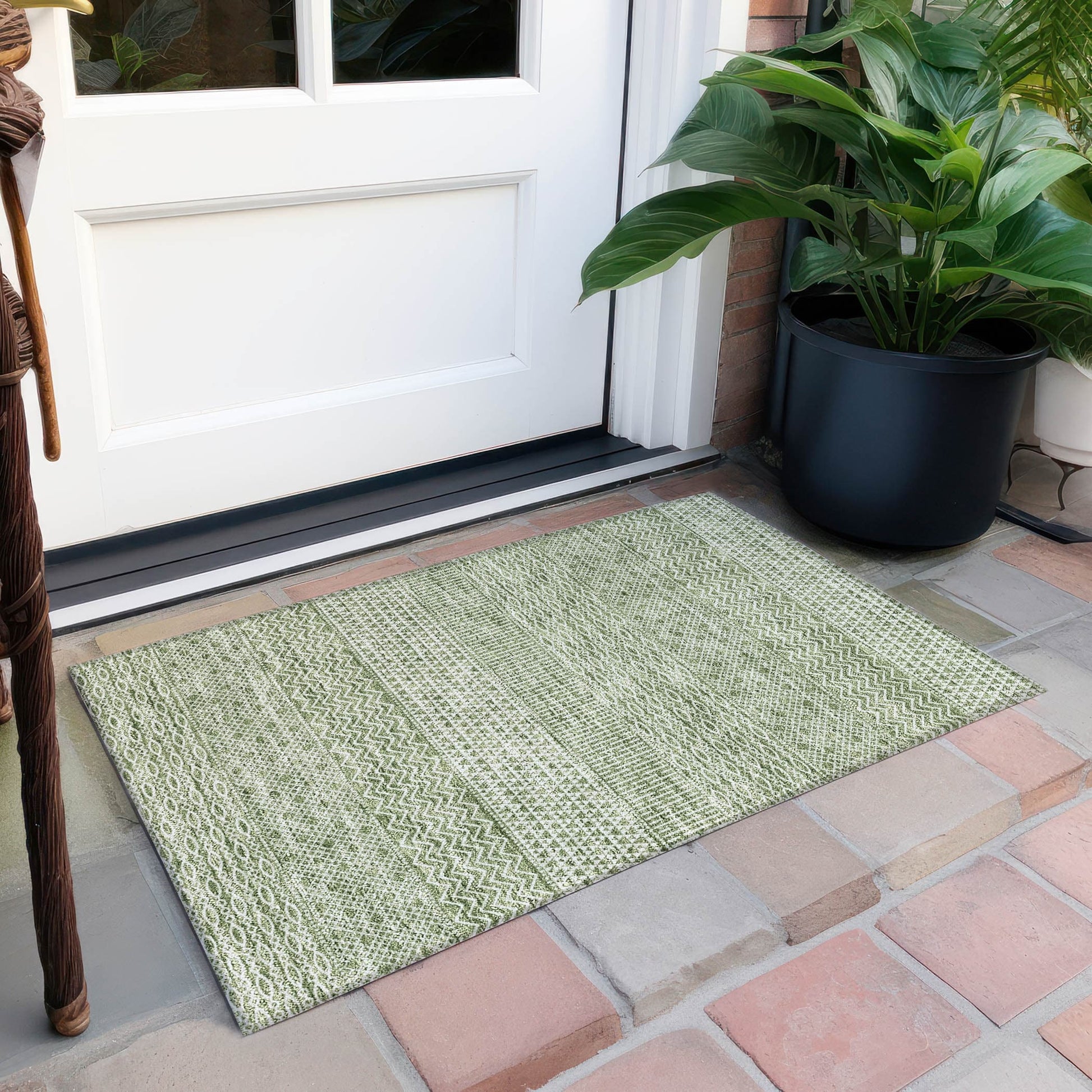 Machine Washable Indoor/ Outdoor Modern Stripes...