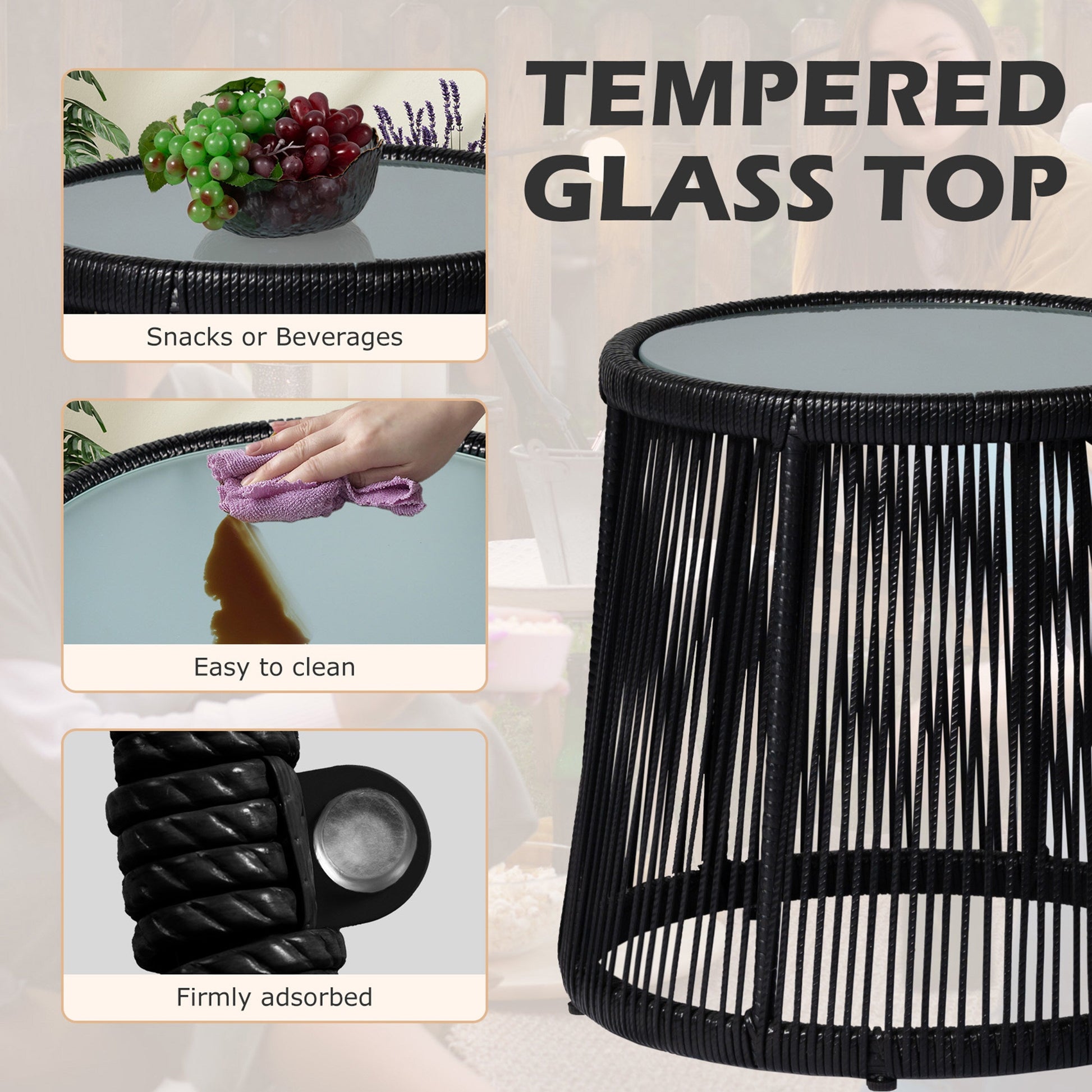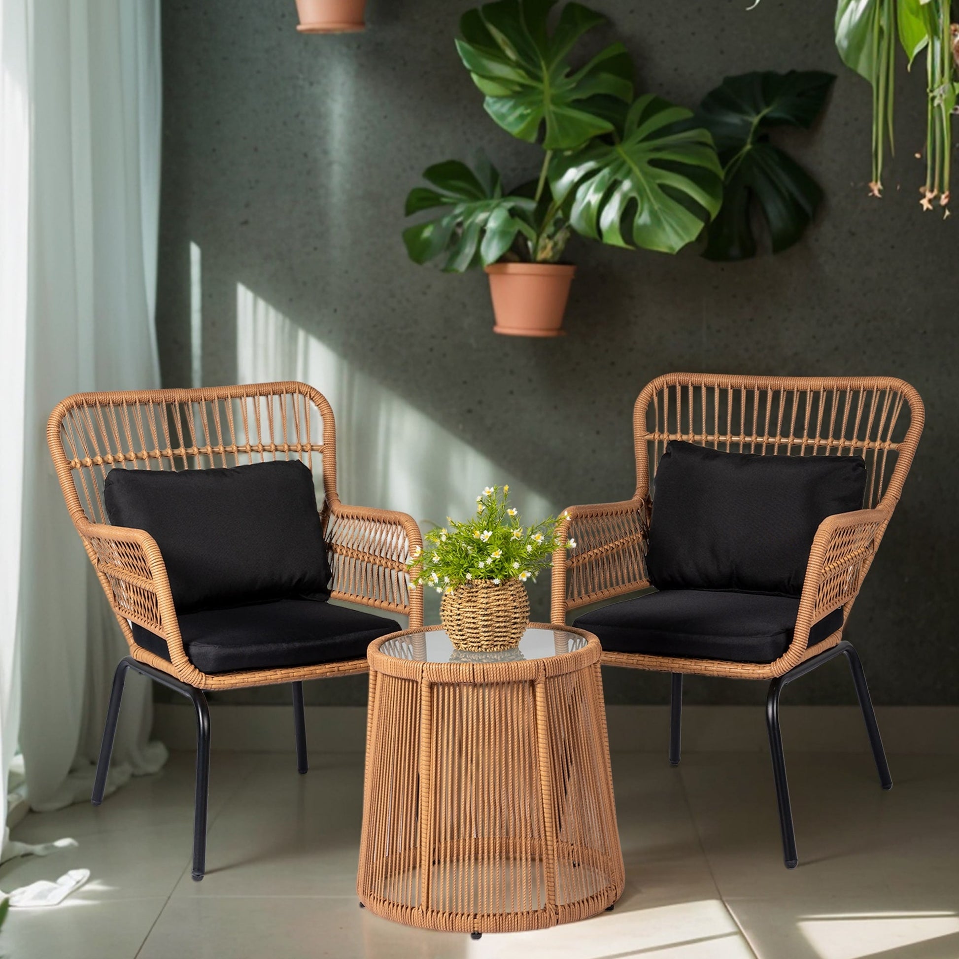 3 Piece Outdoor Wicker Conversation Bistro Set, All-Weather...
