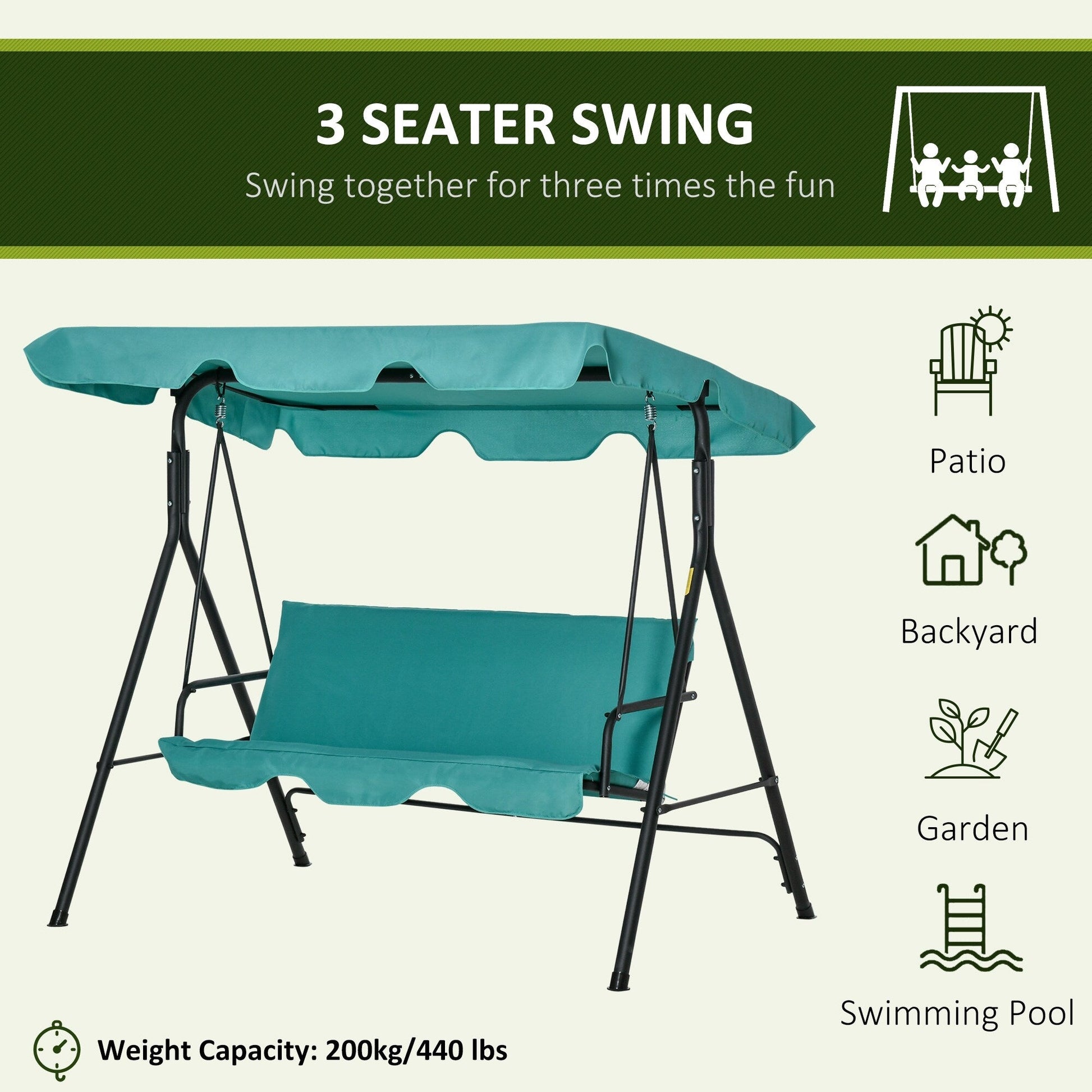 Outsunny 3-Person Porch Lawn Swing