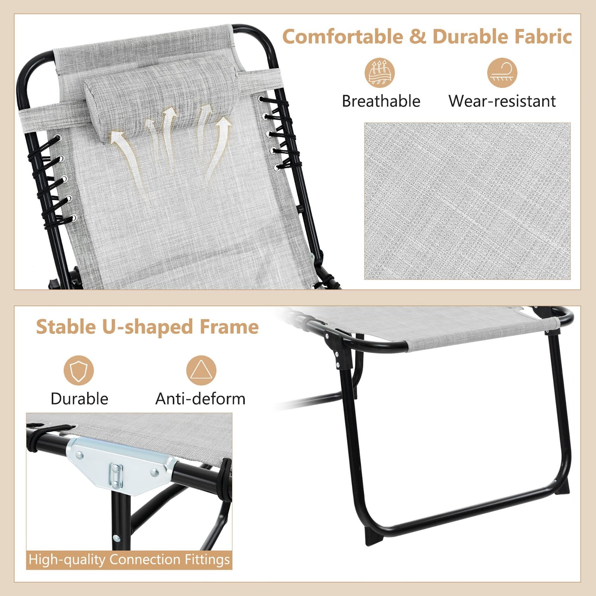 Gymax Folding Beach Lounger Chaise Lounge Chair w/...