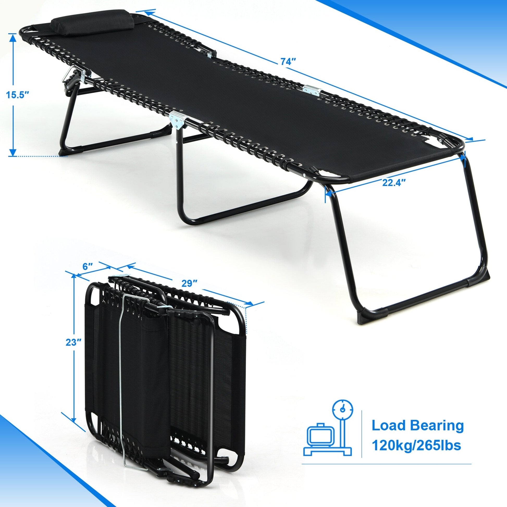 Gymax Folding Beach Lounger Chaise Lounge...