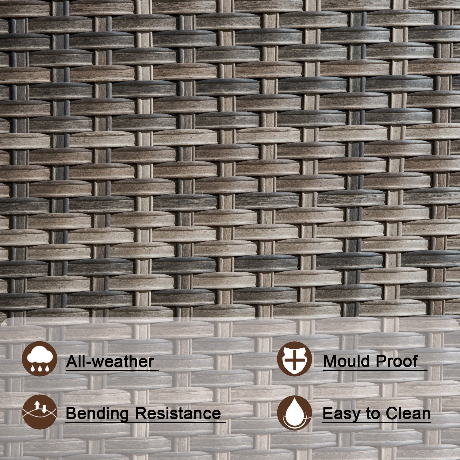 • Conception en osier durable : Sa construction robuste et résistante aux intempéries garantit une longue durée de vie, une résistance à la décoloration et aux intempéries. Cet ensemble est conçu pour résister aux conditions extérieures pendant des années.