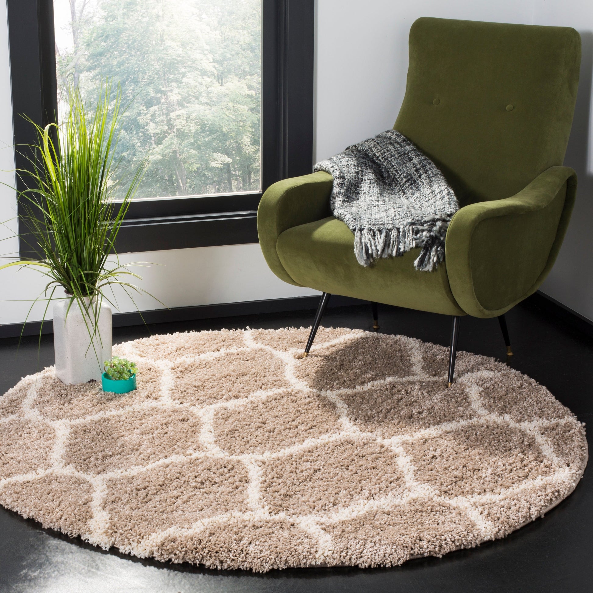 Introducing the SAFAVIEH Hudson Shag Ogee Trellis 2-inch Thick Area Rug, where fashion meets function. The luxurious shag pile showcases modern and Moroccan-inspired designs, making it the perfect choice for a contemporary, country, rustic or transitional style of room d茅cor. This rug is made from durable and easy-care yarns that can withstand high-traffic areas with frequent activity. With a 2-inch thick pile height, it provides just the right amount of cozy cushioned softness underfoot. Expertly machine-woven from enhanced soft synthetic durable fibers that have a virtually non-shedding pile for ultimate convenience. This rug is easy to maintain with regular vacuuming (without a beater bar) and gentle blotting of minor stains with a mild detergent or carpet cleaner.